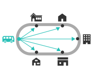 車両の横付けのしやすさなど、さまざまな制約の考慮が可能な実用性の高いルートや エネルギー消費量の少ないエコルートを算出します。